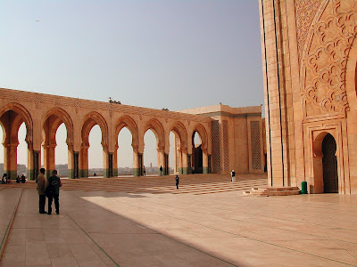 Alors, je rentre dans Casa et je suis, très à la lettre, les indications qu'on vient de me donner pour arriver sur le port et trouver là 2 grands, immenses et magnifiques hôtels : Mercure et Ibis ... Ma préférence va à l'Ibis, évidemment ! ... Hall de luxe, personnages luxueusement vêtus, hommes d'affaires qui concluent leur buisiness ... même pas honte de mon grand pull qui tombe sur mes chaussettes, de mon écharpe qui traîne par terre, des lacets défaits de mes Converse, de mon sac fourre-tout qui recèle mes plus grands secrets, de mon matériel informatique-photographique-téléphonique que je traîne à bout de bras ...