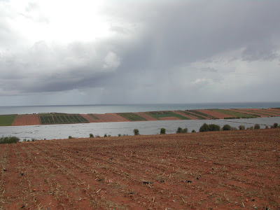 Face à la baie vitrée de ma chambre, une bande de terre culivée : la lagune. tout le long de cette lagune, des petits champs cultivés... c'est tout simplement beau !
